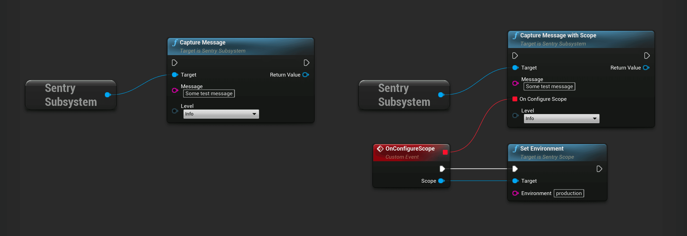 SentrySubsystem->CaptureMessage("Message", ESentryLevel::Info);